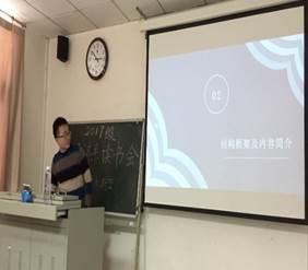 最后,黄立君老师对本次读书会进行了总结。她首先对读书会领导小组三位同学在幕后的默默付出表示了感谢。然后,从当前热映的两部电影——《寻梦环游记》和《芳华》——入手表达了读书会对于同学们的意义。黄老师说:“《寻梦环游记》演绎的是亲情和家庭。我们希望能够通过读书会这个平台,让同学们找到家的感觉。每月一次,大家一起读书,做同一件事情,留下共同的回忆;另一部电影《芳华》,它的主题曲《绒花》中有句歌词,说的是‘世上有朵美丽的花,那是青春吐芳华’。在座的同学们很年轻,正青春。三年研究生学习与生活,我想能让大家的青春绽放芳华的最好方式就是读书。”