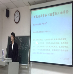 读书会上,同学们畅所欲言,自如展示自己关于两部著作的观点。记得诺贝尔经济学奖获得者罗纳德·科斯曾说,“同学之间的交流是科学发现的大熔炉”。的确,同学之间的交流,思想的碰撞,不仅让大家增长了知识,更体会到了分享的快乐!