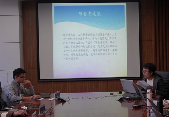 刘胜同学详细讲解了华尔街300余年来的发展史,他把华尔街形象地分为以投机为主,缺乏监管的童年期;以战争为契机,不断壮大的青春期;以投资为主,监管不断形成体系的成熟期。他通过梳理华尔街成长史上九个标志性的大事件,生动体现出了投机者与监管者之间的博弈,人性的善良与丑陋之间的博弈,华尔街与其他金融中心的博弈等等。最后,刘胜同学提出,在当今资本市场上,我们每一个参与者都应该去熟悉游戏的规则,努力克服“贪婪”和“恐惧”的人性弱点,积极参与到资本市场伟大的博弈中,为祖国资本市场健康发展多做贡献。