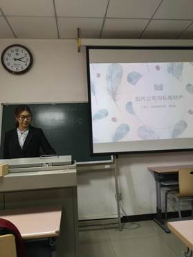 接下来,郑可成同学介绍了《现代公司与私有财产》的后两篇内容。关于本书第三篇他重点阐述的是公司的信息披露,并结合现实谈了目前我国在公司信息披露和审计方面存在的问题。第四篇主要介绍了公司的未来发展趋势。郑可成以提问开场的方式,让大家耳目一新。并且在报告过程中多次与听众互动,起到了很好的效果。