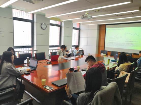 第一个作报告的是窦宗晗同学,他的论文是《我国银行业逆周期资本缓冲机制的有效性研究》,分六个部分:引言、研究回顾、相关理论、MPA体系相关、有效性检验、完善建议。他的论文与以往相关研究相比,创新点在于:使用更新后的样本数据对我国银行业的逆周期资本缓冲机制的适用性进行补充;考察社会融资规模变量的计提效果;结合MPA体系中的指标对单一指标挂钩变量计提体系进行修正,提升该机制的应用效果,为监管工作提供建议与思路。接着,老师们提出了自己的问题与建议,程碧波老师认为论文中credit和SFS两个指标的等价性以及检验的有效性的定义没有交代清楚;成福蕊老师认为论文中所使用的社会融资规模指标没有交代清楚口径;李泳老师认为应该在标题中突出自己论文的重点和创新点。窦宗晗认真听取了老师们的建议,并打算继续修改论文。
