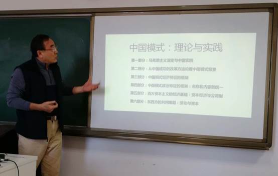 刘院长的授课内容主要包括马克思主义演变与中国实践、从中国成功的改革方法论看中国模式背景、中国模式经济特征的框架、中国模式政治特征的框架、西方资本主义的经济基础、东西方的共同难题六个部分。