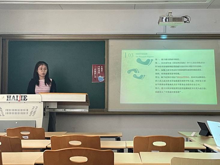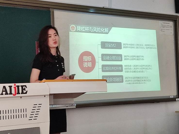 胡蝶同学向大家介绍了“降杠杆与风险化解”、“供给侧结构性改革的理论与实务”等部分。她提出,互联网平台经济应将其经济属性和技术属性结合起来,充分利用自身优势进行发展。她还认为,网络数字平台与产业链相结合的模式可能是互联网金融的未来发展方向。