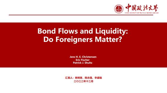资本金融系2022年秋季学期第六期读书研讨会通过腾讯会议的方式成功举行。洪智武老师以及2022级金融专硕和学硕的同学参加了此次研讨会。本期读书会以洪智武老师推荐的论文《Bond Flows and Liquidity: Do Foreigners Matter?》为主要的研讨内容,2022级金融专硕姚明慧、陈永强、辛盛瑞三位同学为本次读书会进行了主题报告,之后洪智武老师进行了点评。