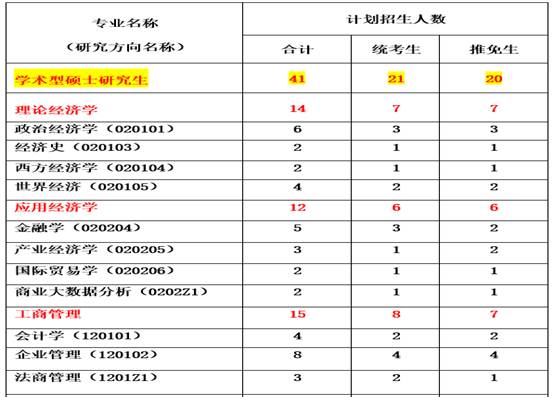 计划招收学术型硕士研究生41人,其中推免生20名,统考生21名,如下1表所示。