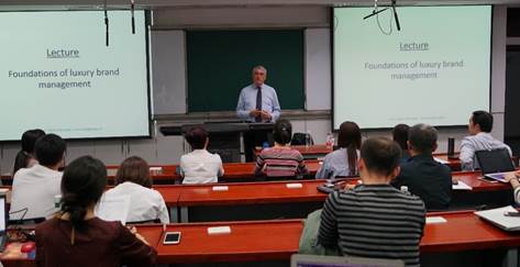 本次讲座,Denis Morisset教授主要围绕三方面内容展开。首先,他阐释了随着中国经济的不断发展,人们的购买力和消费层次显著提高。同时,在信息化时代下,互联网平台带来的商业模式革命使得消费者在选购商品上获得了更多的可能性,消费者需要的已不仅是产品,还有与产品相关的生活方式,因此品牌,特别是高端品牌,将扮演越来越重要的角色。接着,他以欧洲知名高端品牌为例,深入解释了各品牌创立的文化基础和时代背景,阐明每一个品牌的诞生和发展都要依托深厚的文化根基,应时代发展需要而生,适应时代发展而变。Morisset教授应用前沿的管理学知识阐述了如何提升和更新对高端品牌经营管理的理解。他指出国际高端品牌更注重独特性的保持,坚持自身品牌特色的DNA,并结合时代变化做出调整;同时,国际高端品牌具有一个完整的良性生态系统,在垂直和水平两个关联方向上都具有合理布局,并且利用许可经营等方式相互合作,拓展市场空间。由于当今的高端品牌已经具有相当的体量,一些私募基金等资本已经进入高端品牌的建立和营销领域,为高端品牌的发展注入了新的动力。