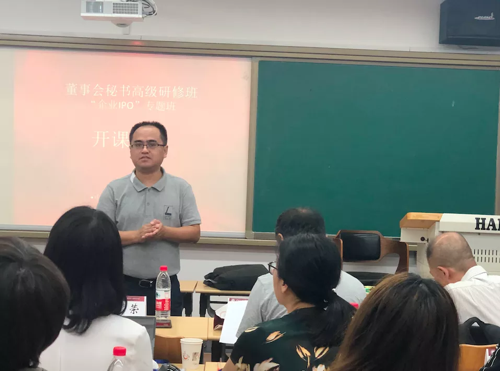 EEP中心举办的董事会秘书高级研修班“企业IPO专题”培训班开班仪式在中国政法大学综合科研楼隆重举行。仪式由EEP中心副主任肖富荣主持,EEP中心主任胡明教授、EEP中心高级主管王育敬出席本次开班仪式。多位权威专家、行业大咖等资深导师将在接下来三天带领学员们从资本战略、发行流程、财务审计、税务规划、政策审核、股权激励、投融资及舆情监控八个重点方向深入解析企业上市关键路径及重点难点。