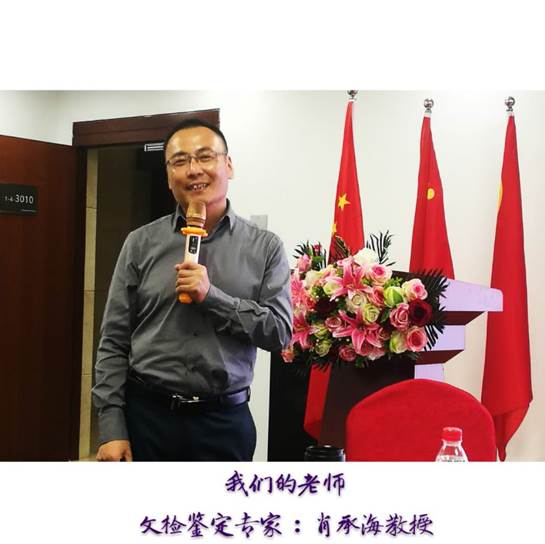 副教授、侦查学研究所所长肖承海博士给大家讲授,主题为《律师实物中常见的文书鉴定及鉴定意见质证》。肖博士主要给大家介绍了司法鉴定的种类、基本流程和鉴定意见的质证。从技术角度结合自身经验,给大家介绍了笔迹鉴定、印章印文鉴定、变造文件鉴定和朱墨时序鉴定等。实用性极强,同学们听得更是目不转睛,课间也继续与老师进行热烈的讨论交流。